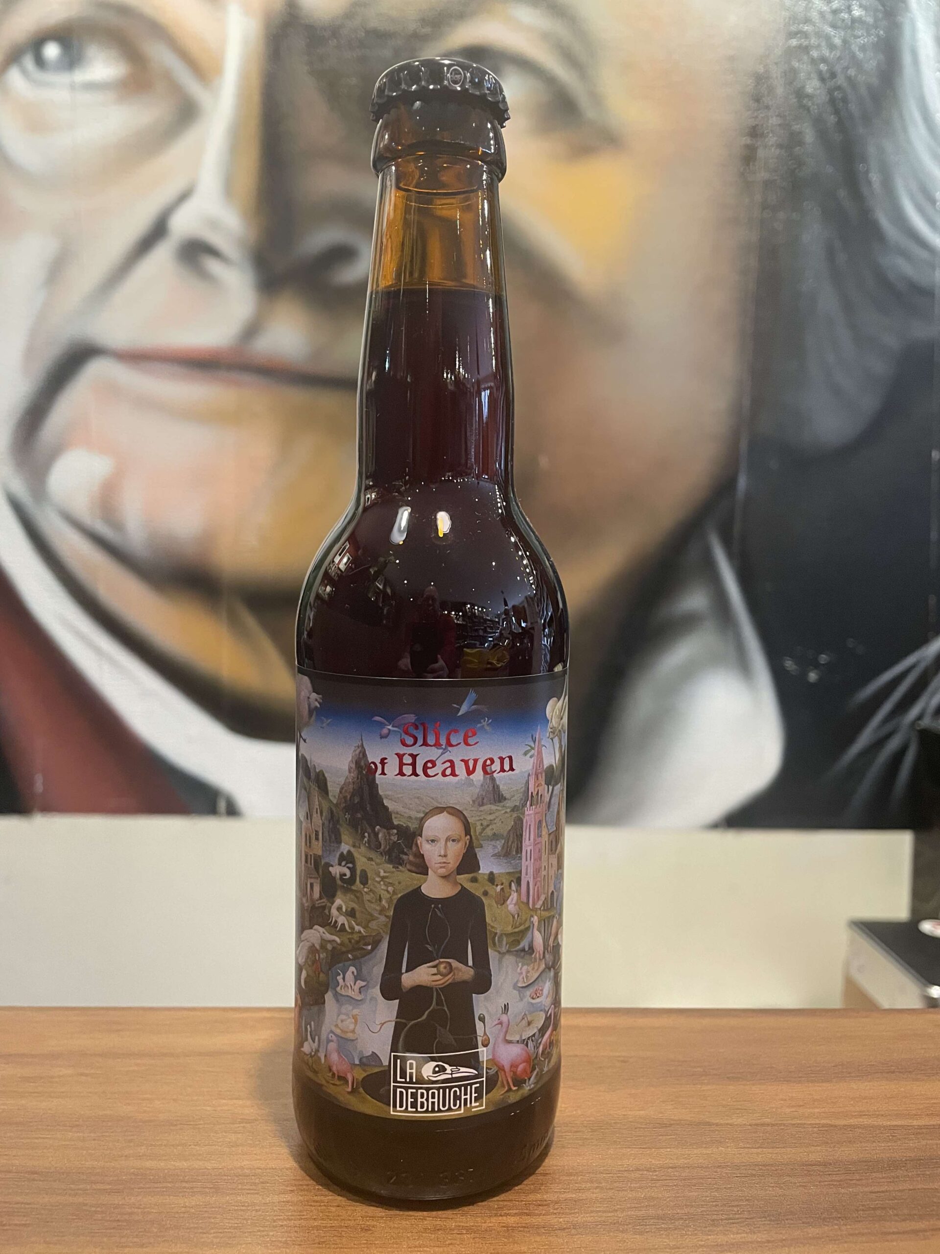 Cette Slice of Heaven est une Eisbock Brett à la cerise (3,13%) vieilli 20 mois en fût de cognac. Une bière gourmandise à 24 %.