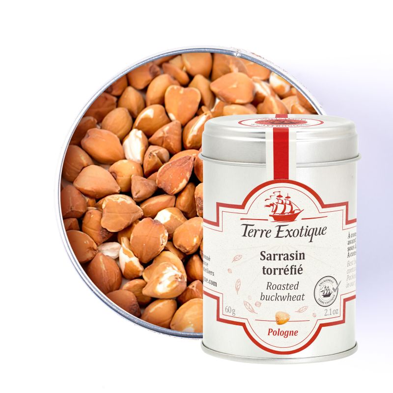 Le sarrasin torréfié est idéal avec un saumon sauvage mariné, avec un suprême de pintade et un jus de truffe ou des asperges blanches accompagnées d’une sauce mousseline. Pour une option sucrée, essayez-le sur des cookies maison ou du nougat glacé, un sorbet ou une crêpe bretonne au caramel au beurre salé. Un délice !